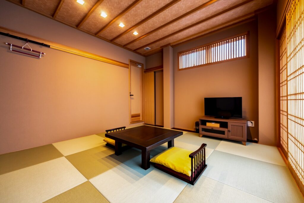 露天風呂、温水洗浄便座付トイレ、冷蔵庫、ポット、液晶テレビ、金庫、ドライヤー、ポットアメニティーフェイスタオル、バスタオル、歯ブラシ、髭剃り、ヘアブラシ、浴衣(女性は7種類から選べます)、足袋(冬季のみ)、石鹸、シャンプー、コンディショナー、ボディソープ、化粧水、メイク落とし、スキンミルク